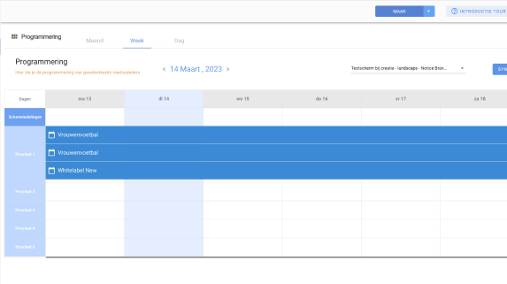 Onze ingebouwde planning tool zorgt ervoor dat jij op ieder gewenst moment content kan inplannen. Dit is toepasbaar op zowel één scherm als meerdere en voor verschillende locaties.